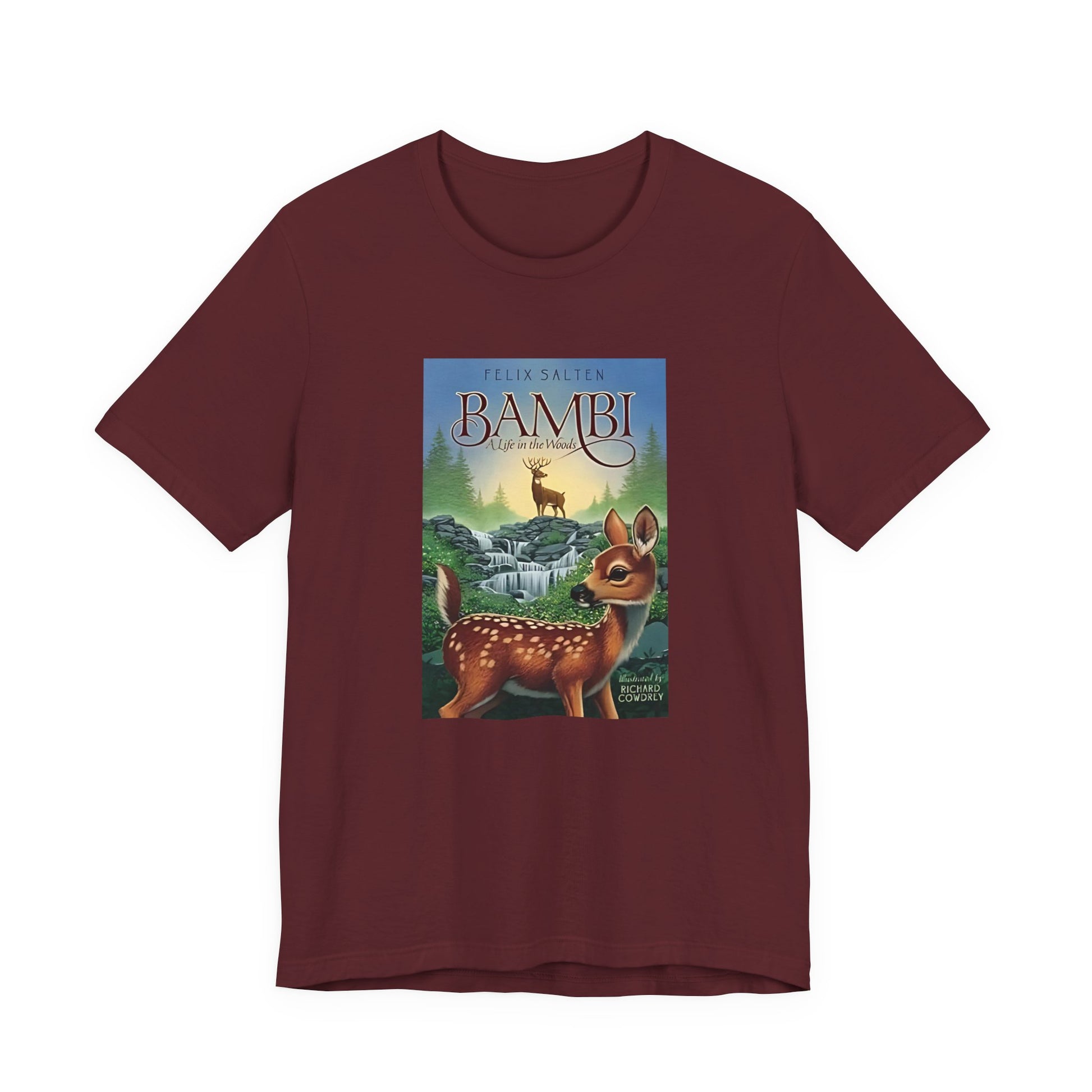Step into the world of the forest with our enchanting Bambi book cover t-shirt. 🦌 This unique design features the original artwork from Felix Salten’s classic book. It is a true tribute to the timeless tale of nature and friendship. This shirt is a must-have for any book lover or fan of the story. It is a piece of wearable art that celebrates a literary masterpiece. This Bambi tee brings the magic of the woods right to your wardrobe.