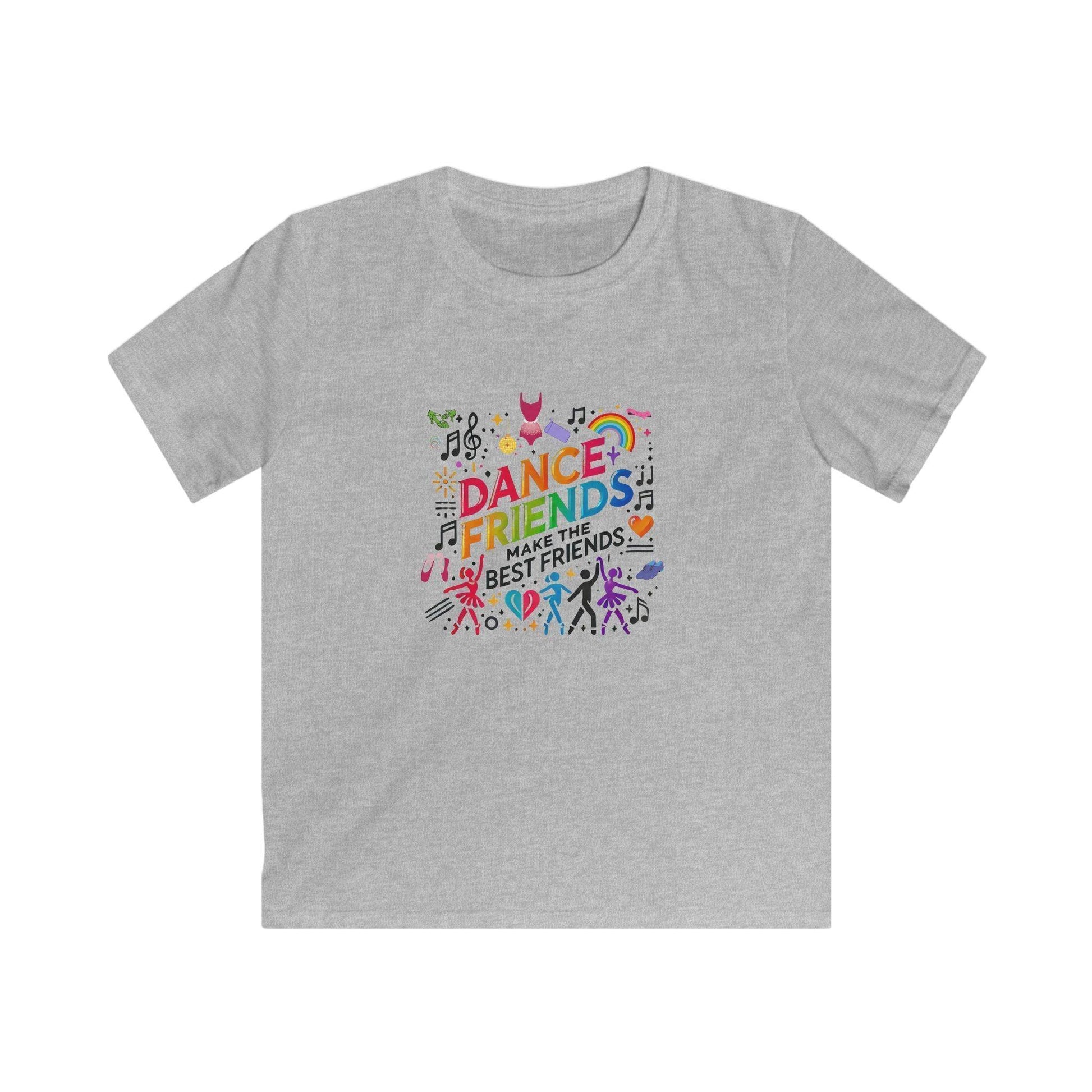 This super-soft kids' T-shirt celebrates the joy of dance and friendship! Featuring a vibrant design with rainbows, music notes, dancing figures, and fun dance accessories, this tee is perfect for little ones who love to move and groove. The cheerful slogan "Dance Friends Make the Best Friends" reminds us that the bonds we form through dance are special and lasting. Made from 100% ring-spun cotton, this comfy tee is perfect for dance class, playtime, or just hanging out with friends.