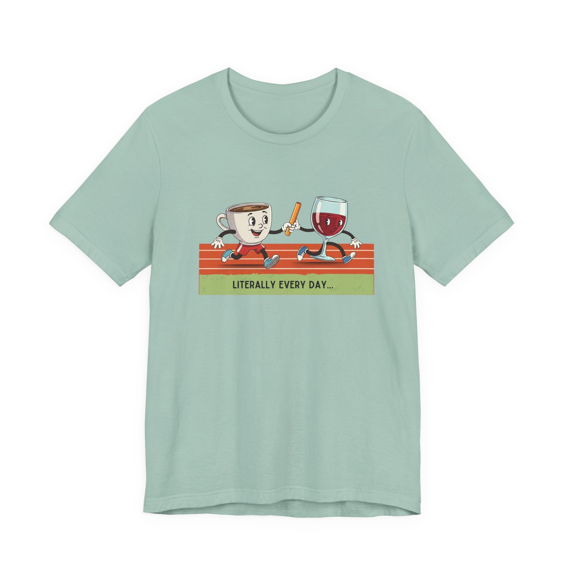 Literally Everyday Unisex Jersey Tee - ☕🏃♀️🍷 From Coffee to Cocktails: It's a Relay Race! 🍷🏃♀️☕
