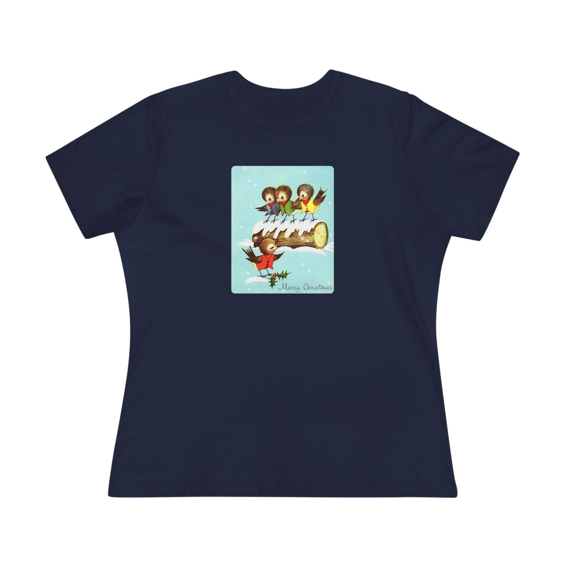 Featuring a charming design of songbirds perched on a branch, merrily singing Christmas carols, this tee is perfect for the holiday season. The soft and comfortable fabric makes it ideal for all-day wear, whether you're caroling around the neighborhood, decorating the tree, or cozying up by the fire.