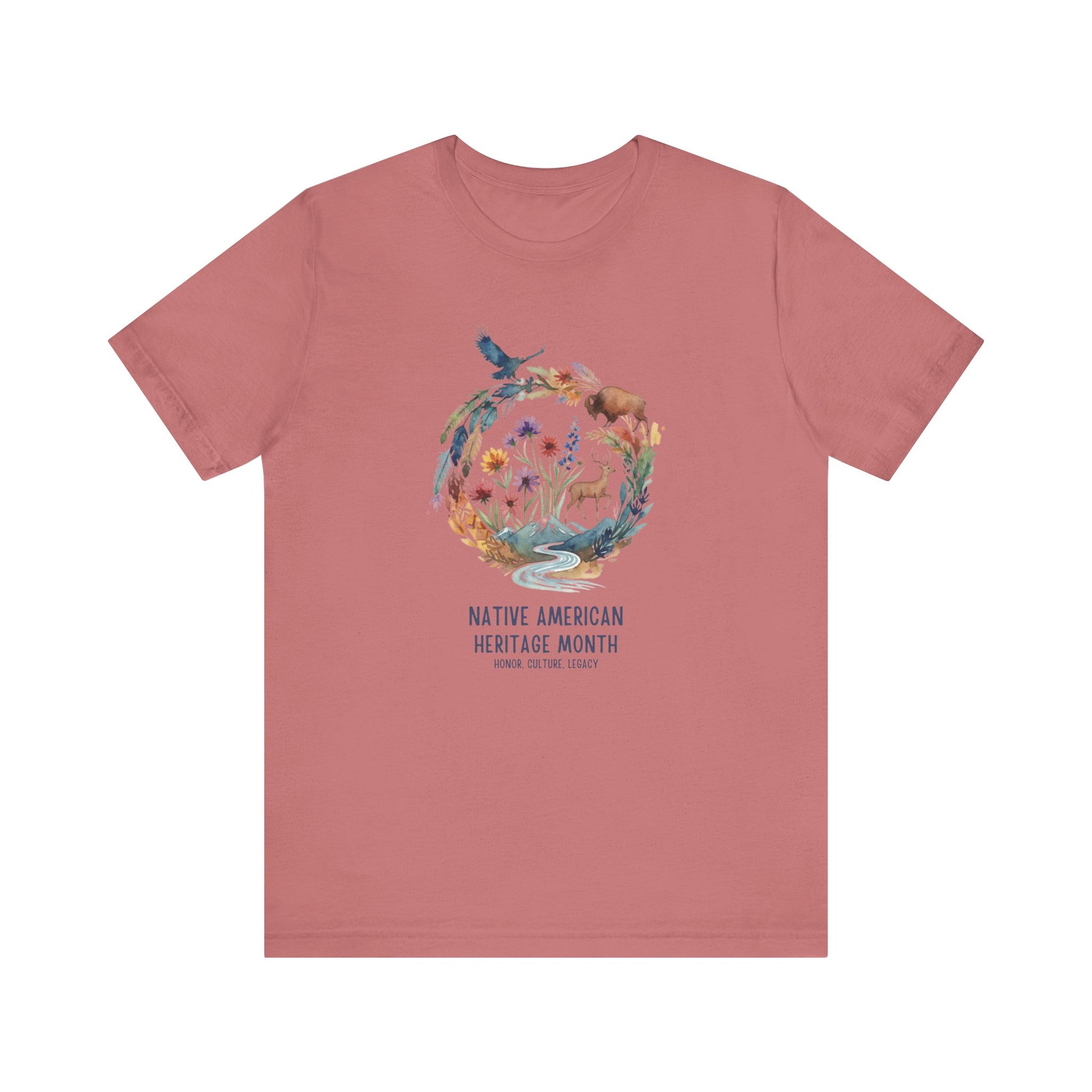 Embrace a soft, comfortable fit with this premium tee, which comes in three earth-inspired colors: mauve, soft cream, and crisp white. It’s an essential piece for anyone who values history, culture, and high-quality, ethically-made apparel. It is a thoughtful gift for educators, history enthusiasts, or anyone participating in cultural observances throughout the month. The detailed watercolor technique ensures that the graphic is vibrant yet subtle, perfectly blending artistry with a significant message. The design avoids stereotypes, choosing instead to focus on the powerful, universal symbols of wildlife and nature revered across many Indigenous traditions. It is a powerful statement of support and recognition during National Native American Heritage Month.