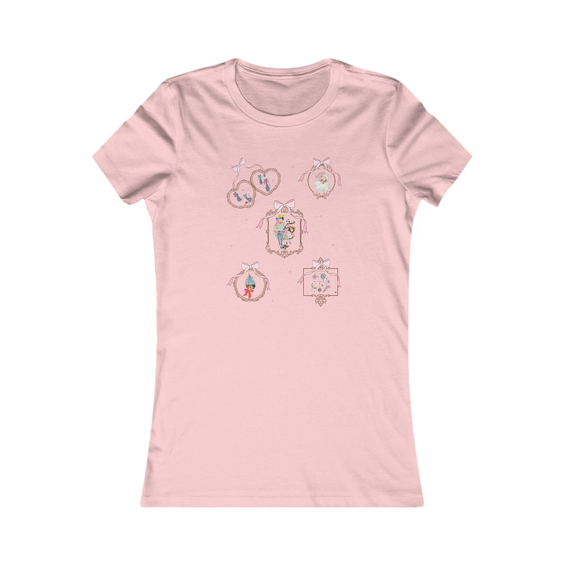 Step into a world of shimmering tinsel, elegant pink ribbons, and mid-century holiday cheer with this exquisite Retro Christmas T-shirt. 🎀 This piece is a true celebration of vintage style, with the graphic design being the absolute star. The delightful graphic is a collage of five distinct, ornate frames, each holding a precious fragment of a classic holiday scene. These illustrations, reminiscent of the most cherished vintage greeting cards, bring a sophisticated, yet playful, spirit to your everyday wear. 🎄