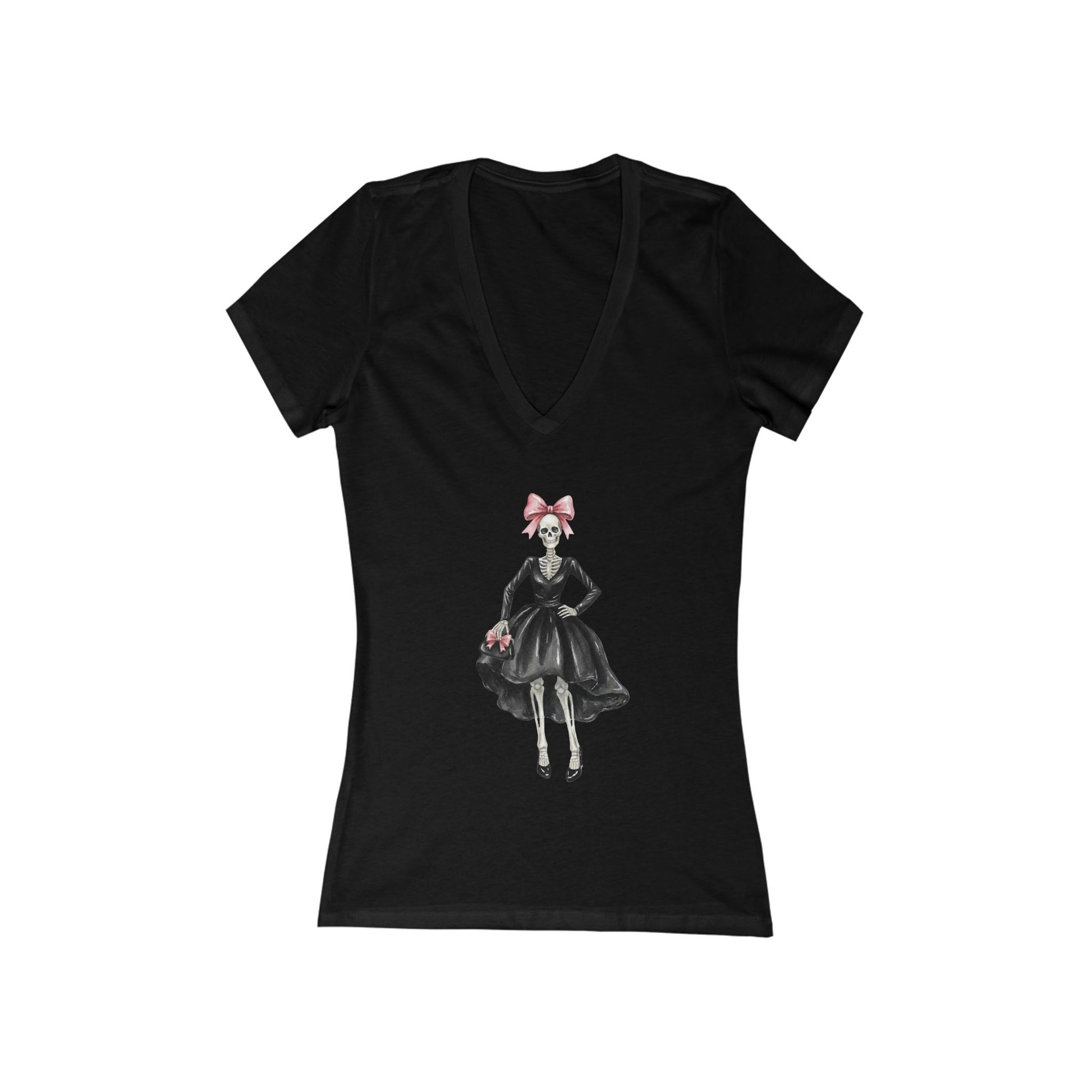 This Women's Jersey Short Sleeve Deep V-Neck Tee (Bella+Canvas 6035) offers superior comfort and contemporary style, making it the perfect canvas for the elegant Skeleton Fashionista design.