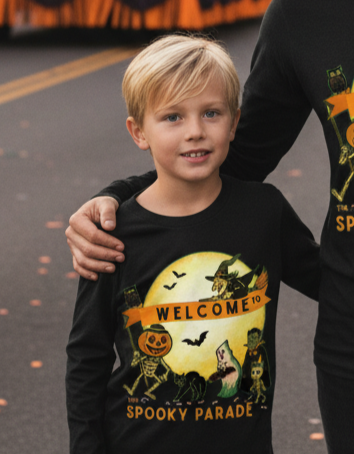 ๐ Welcome to The Spooky Parade Youth Long Sleeve Tee - Classic Halloween Fun! ๐ป
